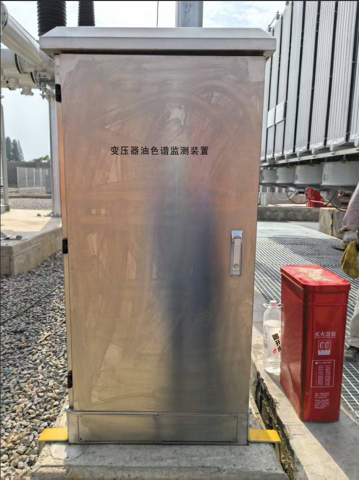 3、产品示意图变压器油色谱在线监测装置:循环取样采集变压器内绝缘油,经油气分离,采集气体组分及气体浓度数据,通过RS485通讯传输至诊断分析监控系统