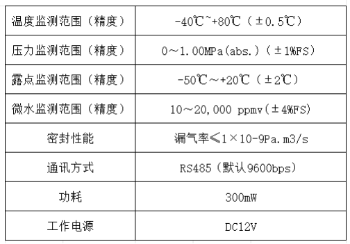 3、产品示意图微水密度传感器:采用内循环技术,气体流通到传感器内,经过传感芯片采集,分析得出压力,温度,露点,微水等数据,提供微水压力与温湿度,密度补偿,保证测量的准确性